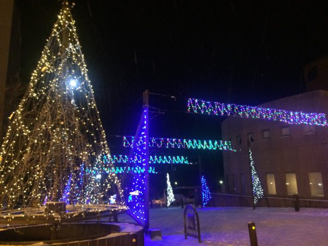 洞爺湖温泉街の夜を彩るイルミネーションストリート。