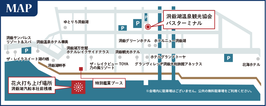 【打ち上げ場所】:洞爺湖汽船本社前桟橋