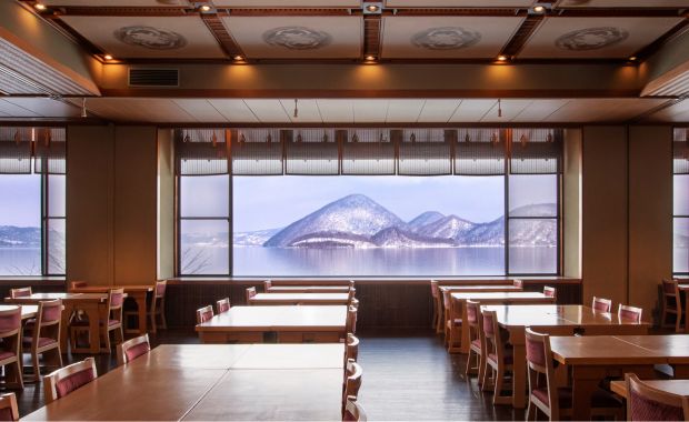 A wide panoramic view of Lake Toya awaits you from your first steps inside.